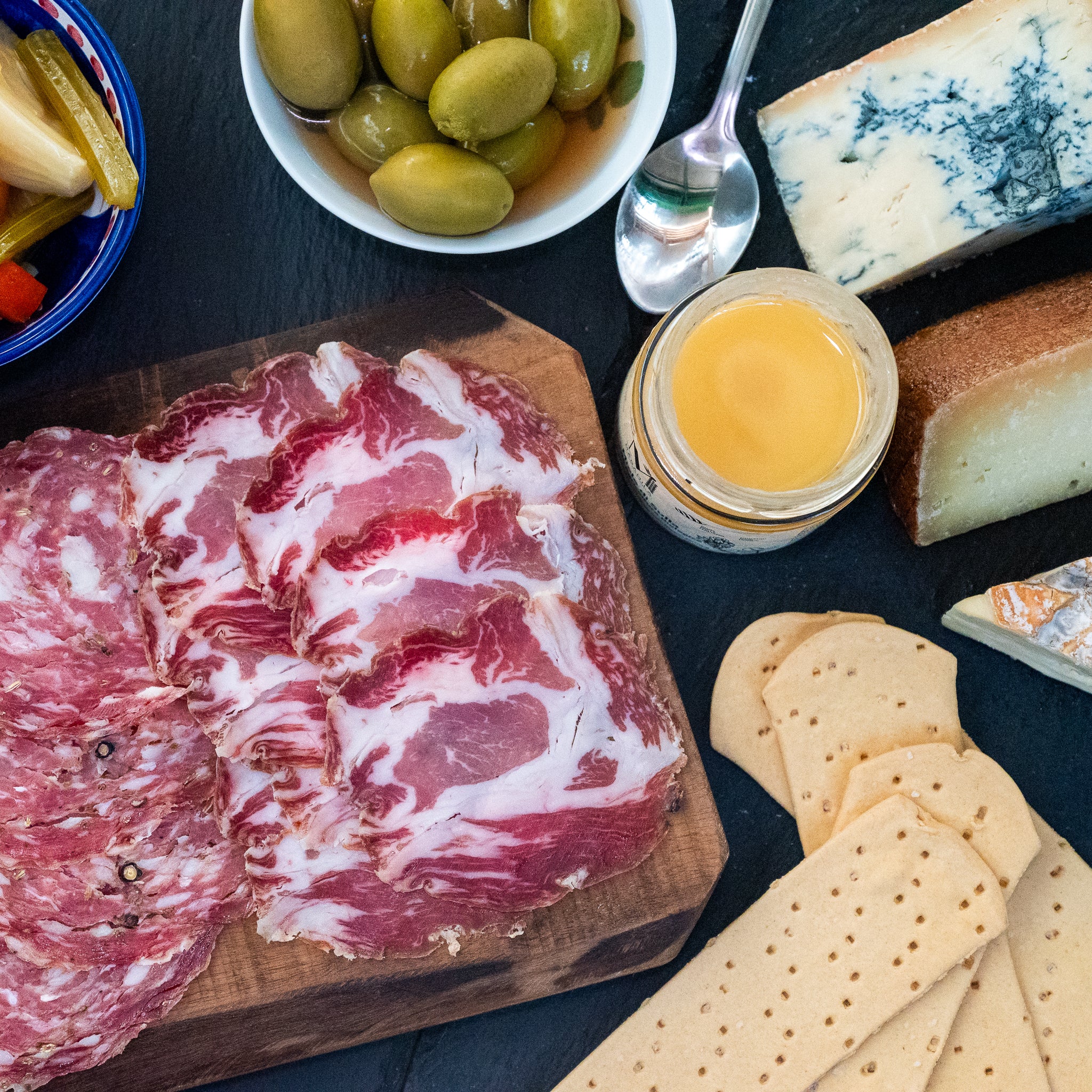 Our purpose built facility, opened in 2018, includes an environmentally controlled curing room, cold storage and a prep kitchen. All product preparation happens here - hams are de-boned, salami sliced, and cheeses cut to order. If you order from us on-line, you will be getting exactly the same products that we sell in our Borough shop.